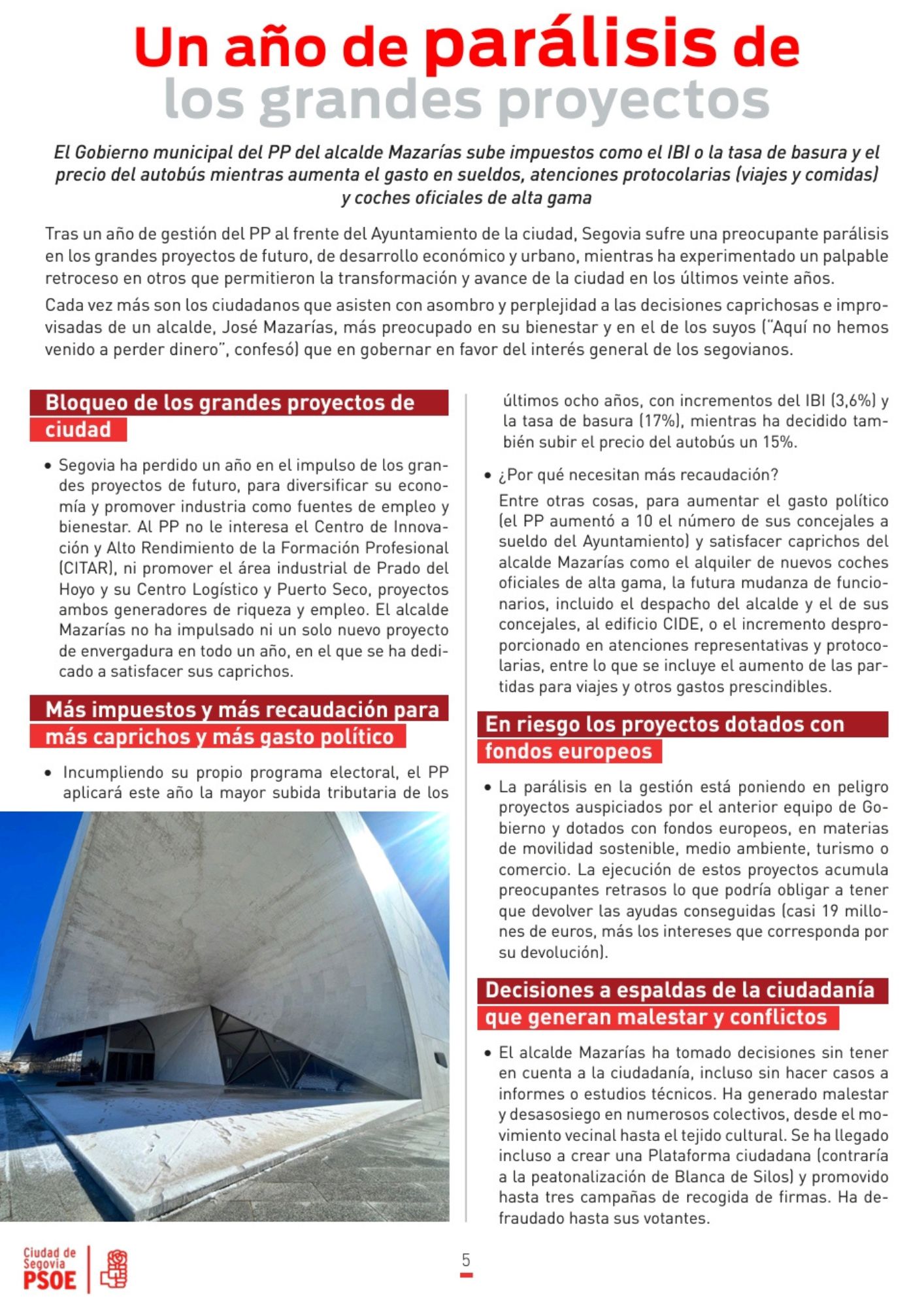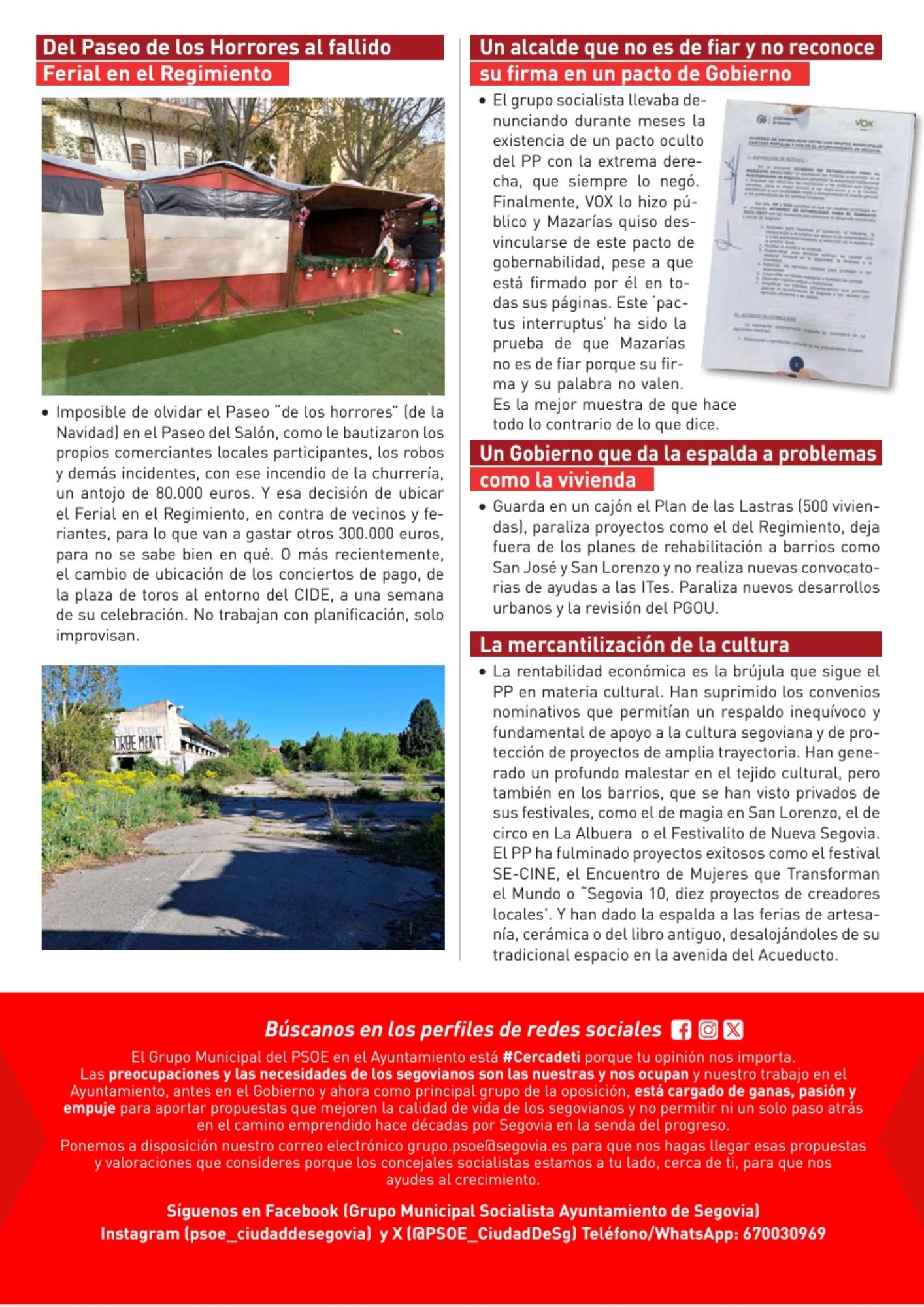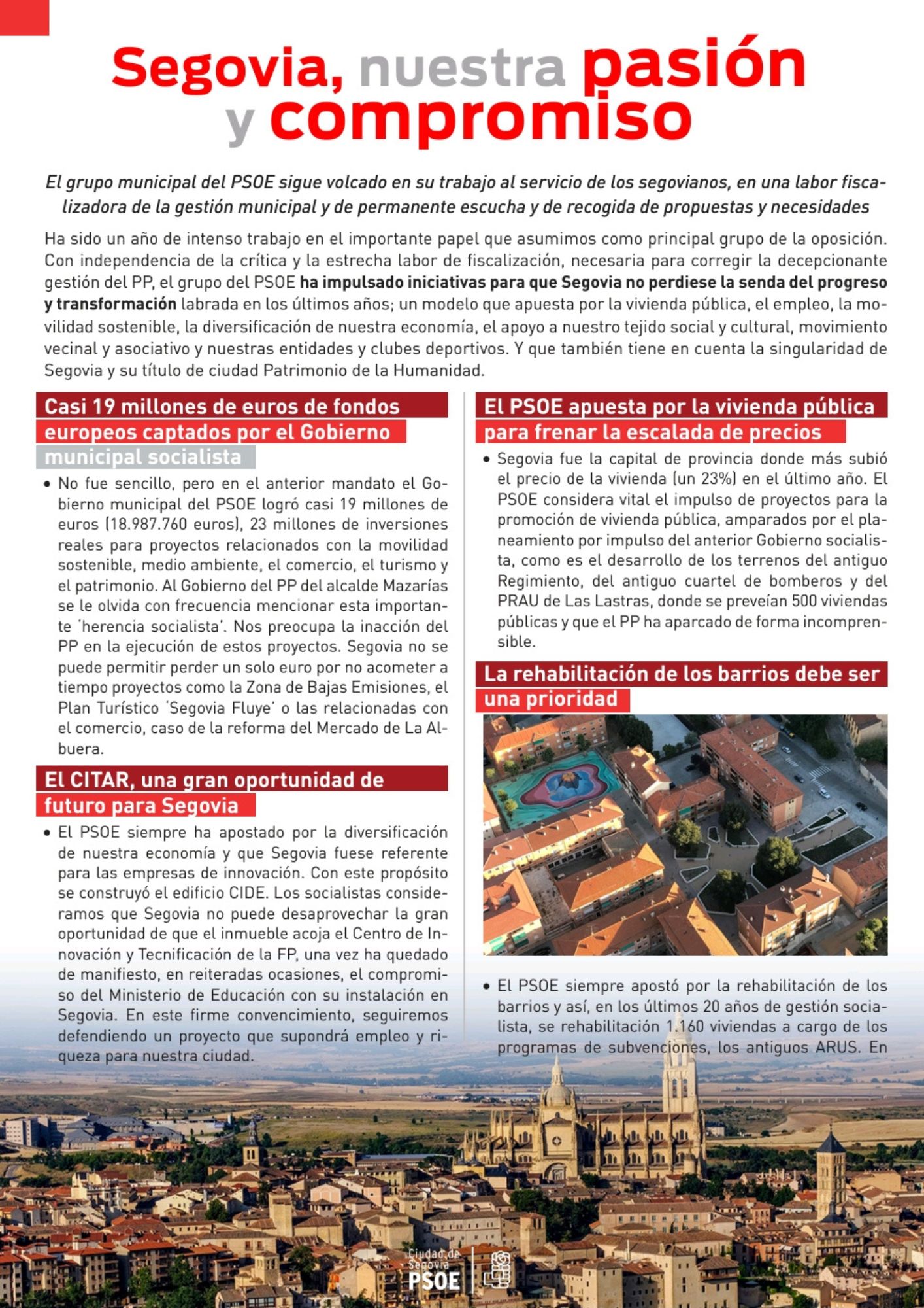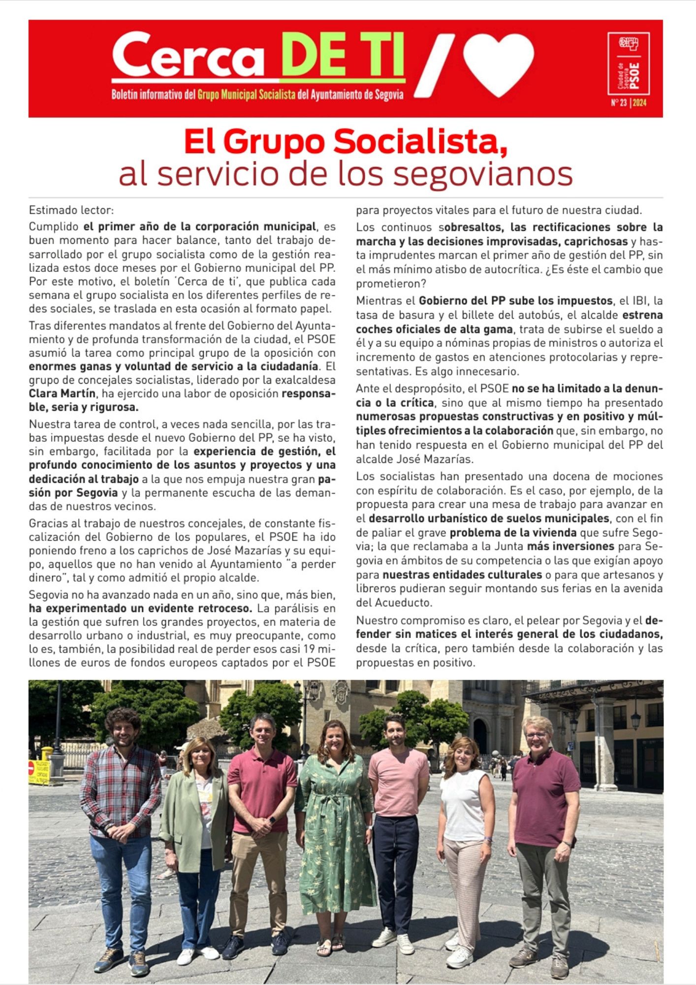 Aquí desplegamos nuestro boletín informativo nº23, una edición especial que hemos editado también en papel para su reparto a nuestro vecinos a través del buzoneo. El boletín impreso resume la intensa actividad del grupo municipal del PSOE en el primer año del actual mandato municipal, en el que Segovia ha sufrido una parálisis de los grandes proyectos  a causa de la errática gestión del Gobierno municipal del PP, sin rumbo, planificación ni estrategia, con decisiones improvisadas y caprichosas.