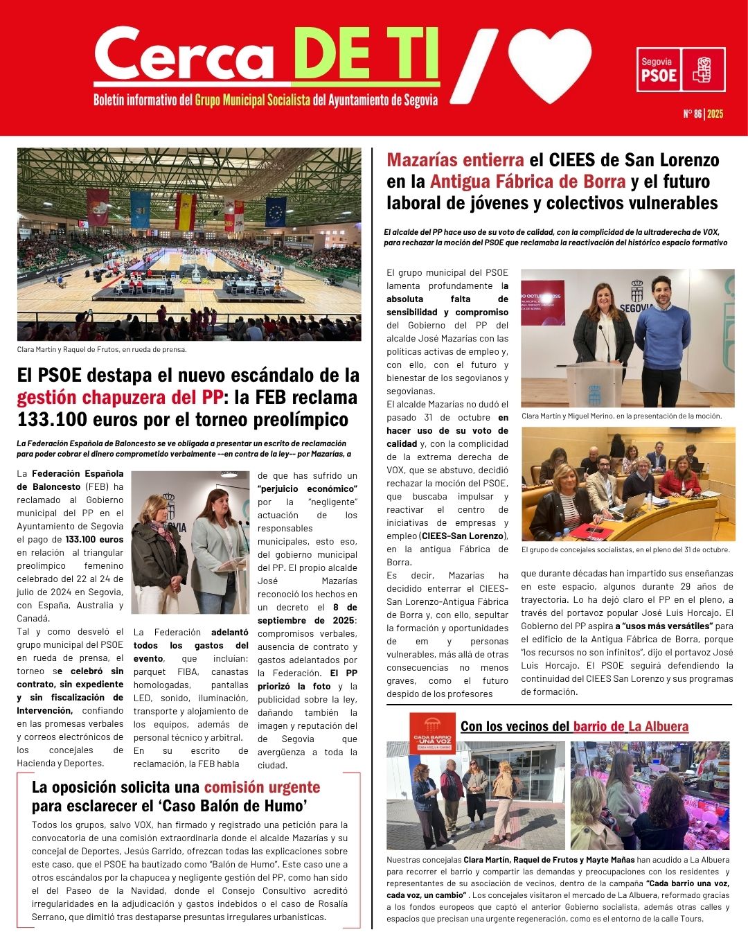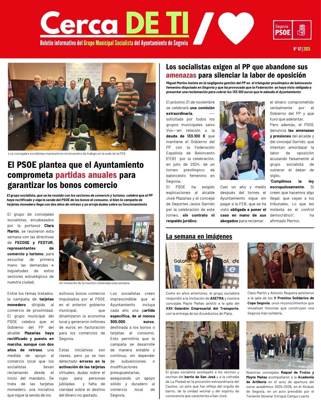 Boletín informativo semanal del Grupo Municipal del PSOE en el Ayuntamiento de Segovia